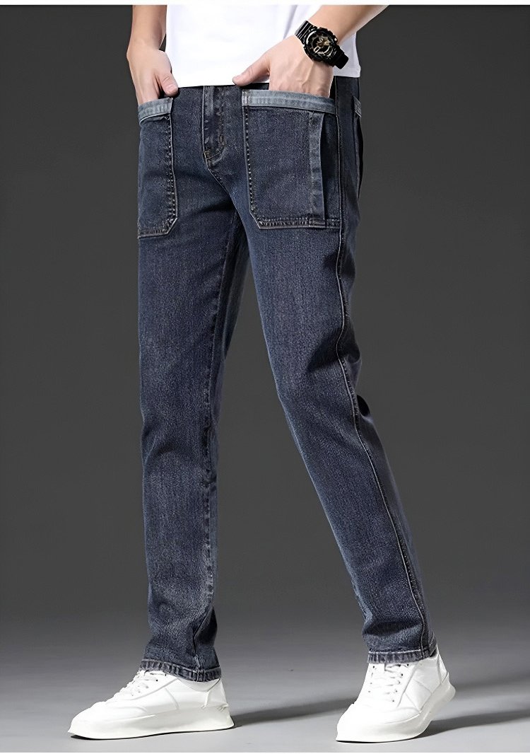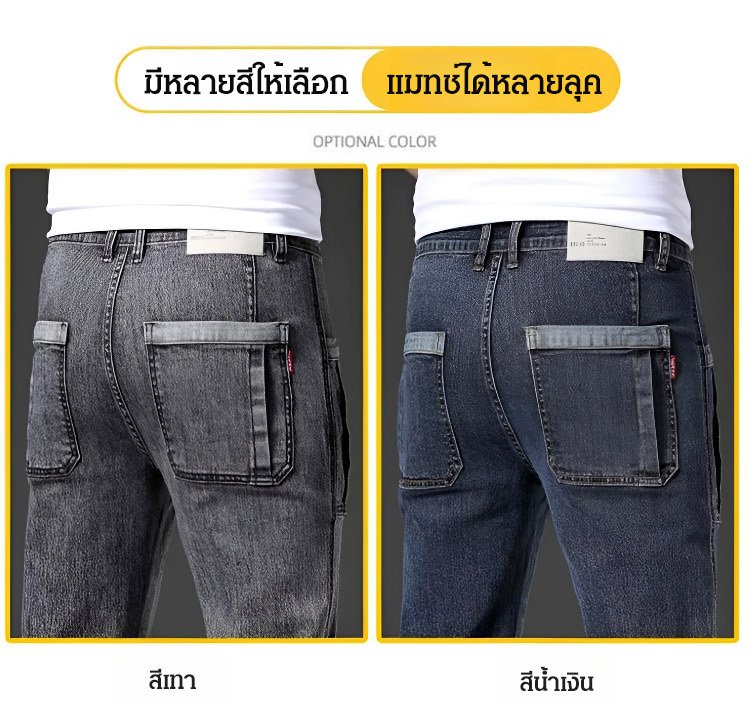 กางเกงยีนส์ทูโทน กระเป๋าใหญ่ ยืดหยุ่นสูง