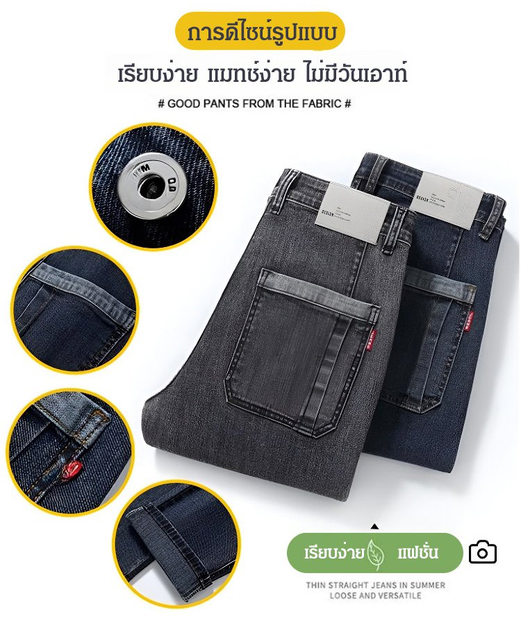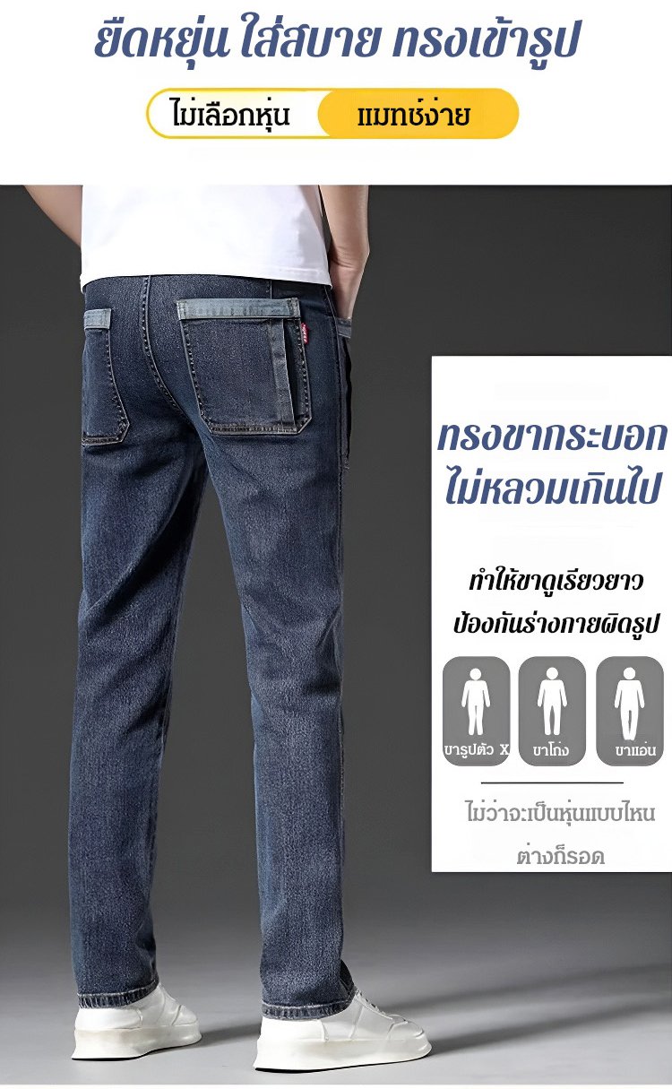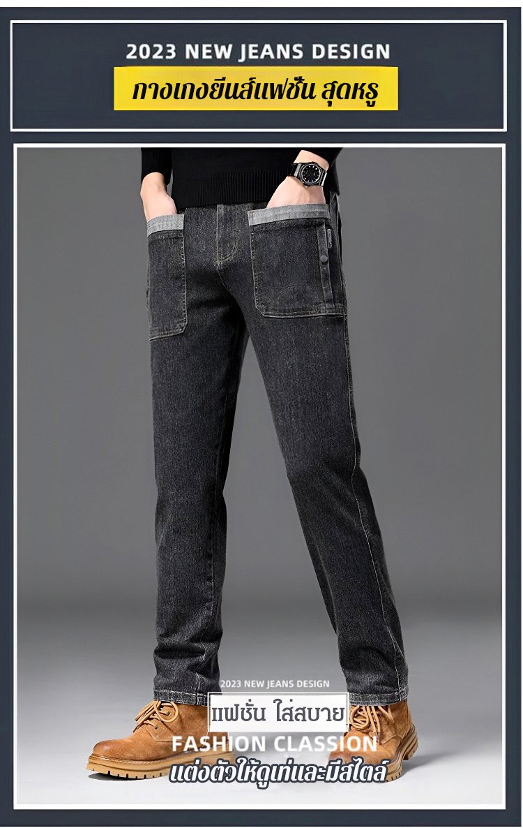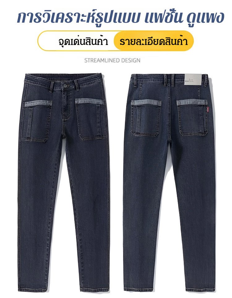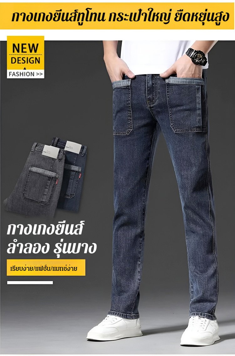 กางเกงยีนส์ทูโทน กระเป๋าใหญ่ ยืดหยุ่นสูง